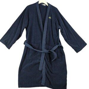 LACOSTE Terry Robe Unisex SZ OS Navy Blue Belt Pockets Cozy Warm Snug Luxury