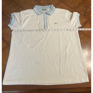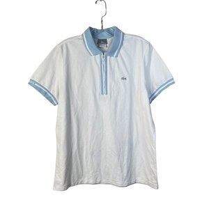 LACOSTE White Blue Slim Fit Polo Women's Short Sleeve Shirt Cotton Blend Size 4