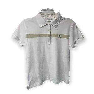 LACOSTE SLIM FIT LETTERED COLLAR SINGLE STRIPE POLO SHIRT WHITE/TAN S