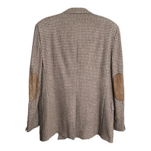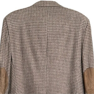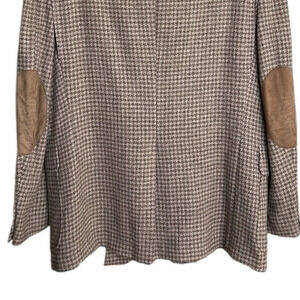 LACROSSE Vintage Wool Sport Coat Blazer Career Houndstooth Tan Elbow Patch 42L