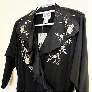 Introducing the Lacy Afternoon by Shell Kepler Black Embellished Jumpsuit in size L, brand new with tags (NWT). You remember Shell--she played nosy nurse Amy Vining on General Hospital! This stunning vintage jumpsuit captures the unique style of her Lacy Afternoon collection from The Home Shopping Club during the early to mid-1990s.