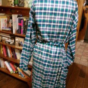 LADIES DREAM CO LONG AQUA PLAID ROBE FLANNEL LONG 1 X