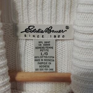 LADIES EDDIE BAUER CREAM CABLE FISHERMAN SWEATER LARGE (P) PREPPY MINIMALIST