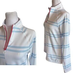 LADIES G/FORE OFFSET BLUE WHITE STRIPE QUARTER ZIP PULLOVER SNOW Medium Like New
