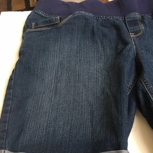 This is a great pair of ladies’ denim maternity shorts, Color: Denim, Style: MAT115260, Size: XL.
