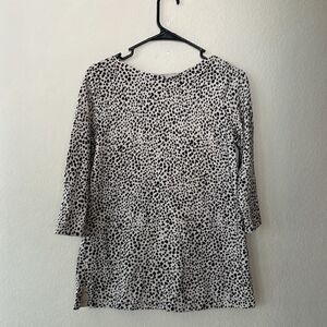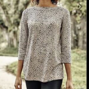 J. Jill Boat Neck Sweater 3/4 Length Sleeve Size Small Animal Leopard Print
