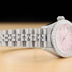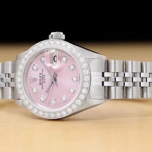 LADIES ROLEX DATE PINK DIAMOND DIAL 18K WATCH