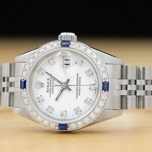 LADIES ROLEX DATEJUST FACTORY DIAL 18K GOLD SAPPHIRE WATCH