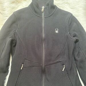 LADIES SPYDER BLACK CABLE ZIP UP FITTED FLEECE S/P