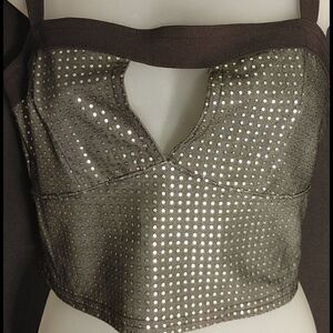 Gray top with silver bullets on front and back. Also has a black border on the front.