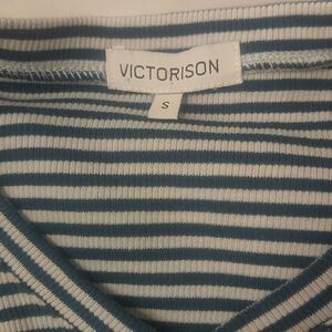 LADIES VICTORISON V NECK PULL OVER STRIPE TOP SM.