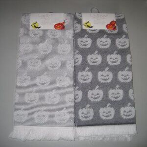 LADINNE SET OF 2 KITCHEN TOWELS HALLOWEEN MOTIF FRINGE 20 X 30 NIP
