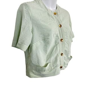 LADY ALDEN SHOP Striped Green VINTAGE Jacket Blazer Short Sleeve Lightweight 8