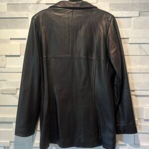 LADY HATHAWAY 90's Vintage Genuine Leather Lined Trench Coat Jacket Black L Y2k