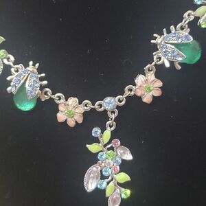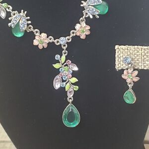 LADYBUG BUTTERFLY FLORAL Enamel & Crystal Jewelry Set Necklace Earrings