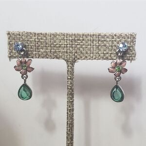 Silver-tone setting with pastels both enameling and sparkling crystals.