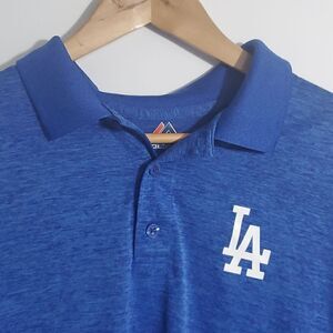LA. Dodgers Men's Majestic Solid Birdseye Polo Royal Blue Size L