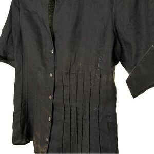 LAFAYETTE 148 Black Linen Button Down Short Sleeve Top Size 4