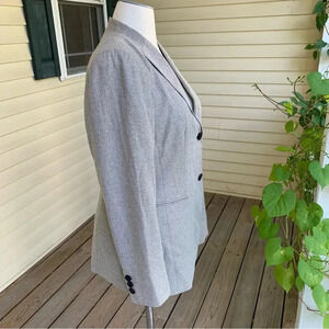 LAFAYETTE 148 Blazer Sz 16 Silk Wool Blend Single Breasted Beige White Weave