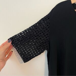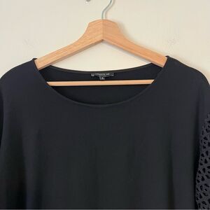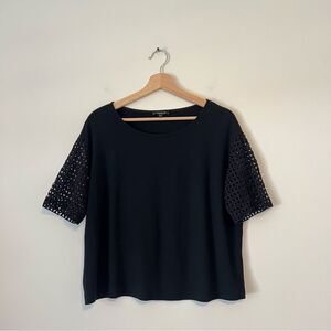 LAFAYETTE 148 Eyelet Sleeve Knit Top Black Lyocell Blend Boxy Fit