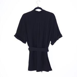 LAFAYETTE 148 Finesse Crepe Belted Shacket Black Button Down Women's XL