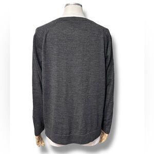 LAFAYETTE 148 Grey Wool Round Neck Sweater Vegan Leather Patch Pockets