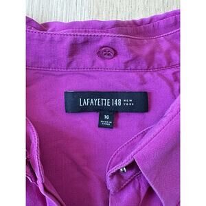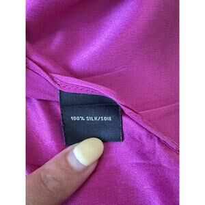 LAFAYETTE 148 Hot Pink Magenta 100% Silk Satin Collared Button-Up Top 16 2174
