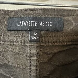 LAFAYETTE 148 Midrise Brown Croc Snake Print Straight Leg Pants Size 12 Stretch