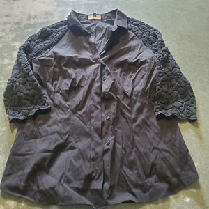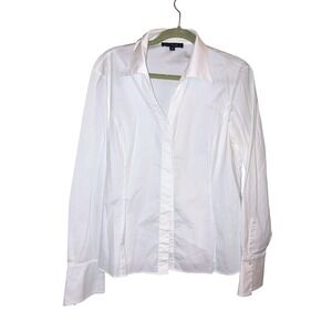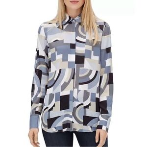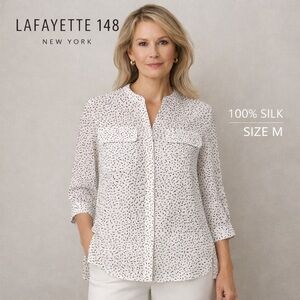 Keywords: Lafayette 148, button up shirt, womens shirt, checkered pattern, grid print, long sleeve, business casual, sophisticated, preppy, classic, workwear, smart casual