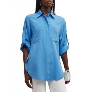 LAFAYETTE 148 NEW YORK Blouse White Button Stretch Collared Size XXL NEW