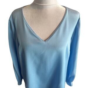 LAFAYETTE 148 NEW YORK LANTERN SLEEVE V-NECK SILK BLEND Sky Blue BLOUSE Medium