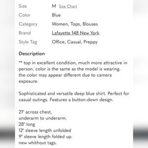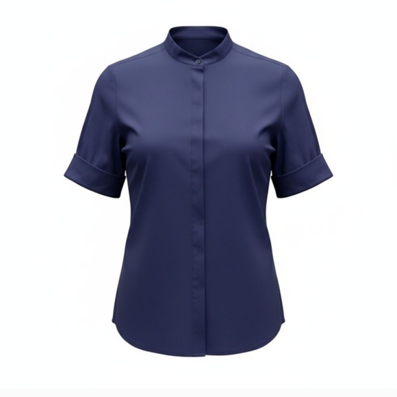 LAFAYETTE 148 NEW YORK, RICH ROYAL BLUE SHORT SLEEVE BUTTON DOWN SHIRT SIZE MED