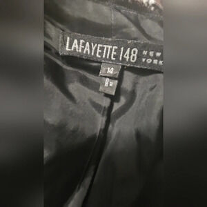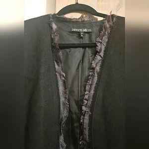 LAFAYETTE 148 NEWYORK Blackwool/cashmere openfront blazer.Silk fray trim. Sz14