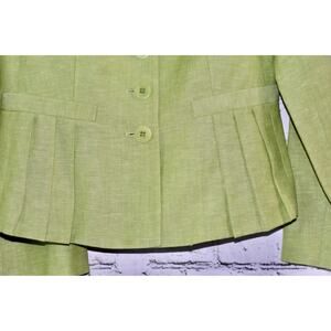 Sophisticated suit!! You'll feel effortlessly stunning in this elegant Body Slimming look ready for work or tea party. Features long sleeves with button down front * Fully lined * Linen and Wool Blended Fabric * Pleated detail * Skirt side zipper *
