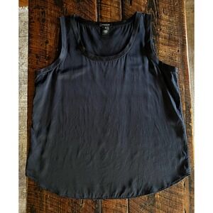 Preloved in EXCELLENT Condition - LAFAYETTE 148 New York Women's Perla Luxe Reversible 100% Silk Charmeuse Blouse/Tank in a stunning Dark Navy Blue color, Size an XL. Tag is designed to flip over so that you can wear either as a Matte top or as a Shiny Silk top.
