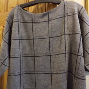 LAFAYETTE 148 New York Sweater Grey Black Window Pane-Short Sleeve-M/L - NEW $59