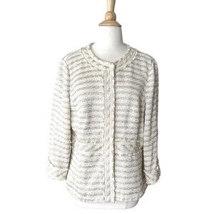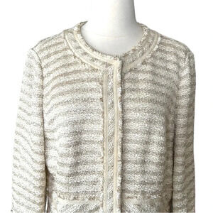 LAFAYETTE 148 New York Tweed Blazer Jacket Champagne & Tan Metallic Career, 14