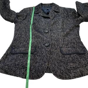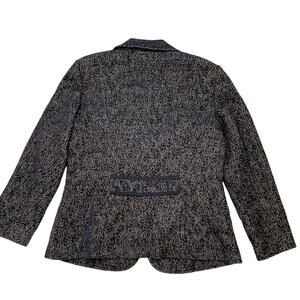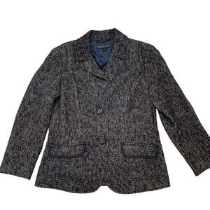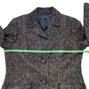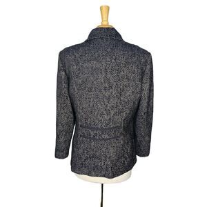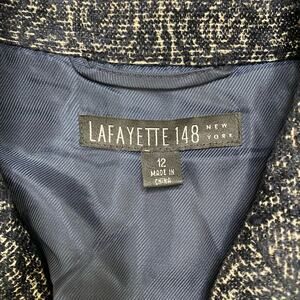 LAFAYETTE 148 Paisley Swirl Navy Blue & White Blazer Jacket. Size 12 Womens. Unlined. Removable shoulder pads. Fabric is soft but looks similar to a tapestry fabric. Excellent condition -- no rips, stains, or holes.