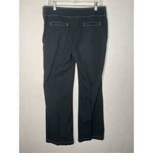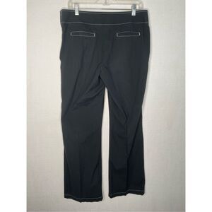 These Lafayette 148 New York pants are a versatile addition to any wardrobe. The solid black color, flat front and mid-rise waist make them perfect for both casual and business occasions. The side zip closure adds a touch of elegance, while the bootcut leg style and wide leg design create a flattering silhouette.