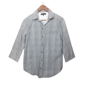 LAFAYETTE 148 Poplin Stretch Button Up Shirt White Black Gray Women’s Sz Medium