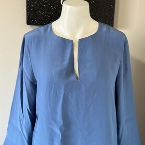 LAFAYETTE 148 Silk Blue Notched Neck Top Blouse Career Shirt Sz M