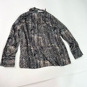 LAFAYETTE 148 Silk Button-Up Shirt Womens 14W Herringbone Tie Bow Buttoned Cuff