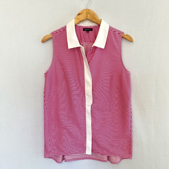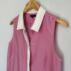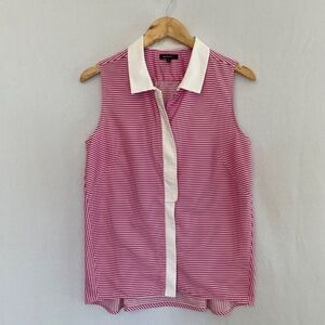 LAFAYETTE 148 Size Medium Pink & White Striped Snap Front Blouse