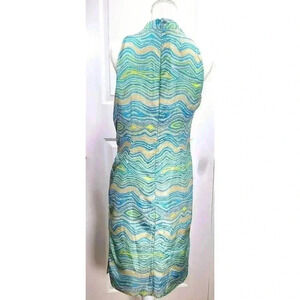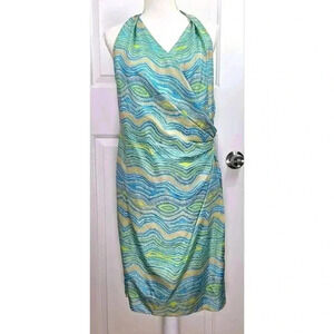 LAFAYETTE 148 Sleeveless Wrap Dress Wavy Stripe Multi Green Beach Colors Size 8