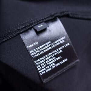 Stretchy black pants with an elastic waist, back zipper, and ankle slits. Features subtle back seams.