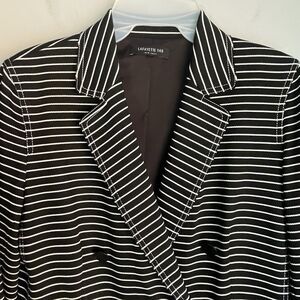 LAFAYETTE 148 Striped Blazer Sz 4 Devin Asymmetric Button Front Black Jacket