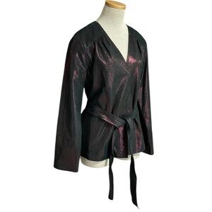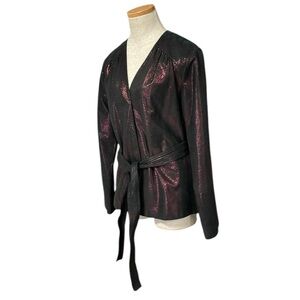 LAFAYETTE 148 Suede Blazer Jacket Black Red Sparkle Metallic Size 4