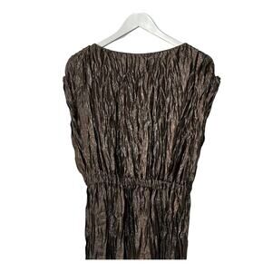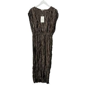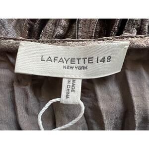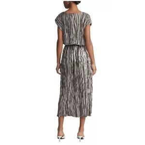 LAFAYETTE 148 WOMENS SMALL PLISSE GATHERED WAIST MIDI DRESS PEWTER METALLIC NEW