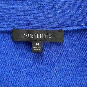 EXCELLENT CONDITION LAFAYETTE 148 WOOL AND CASHMERE RUFFLE SWEATER IN BLUE