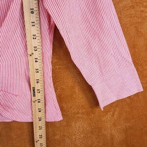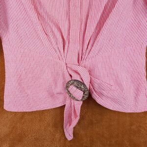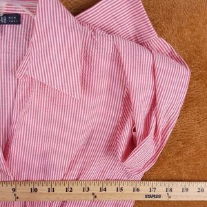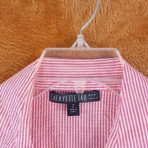 LAFAYETTE 148 Womens Top Size 2 Red Stripe Button Up Knotted Searsucker Popover